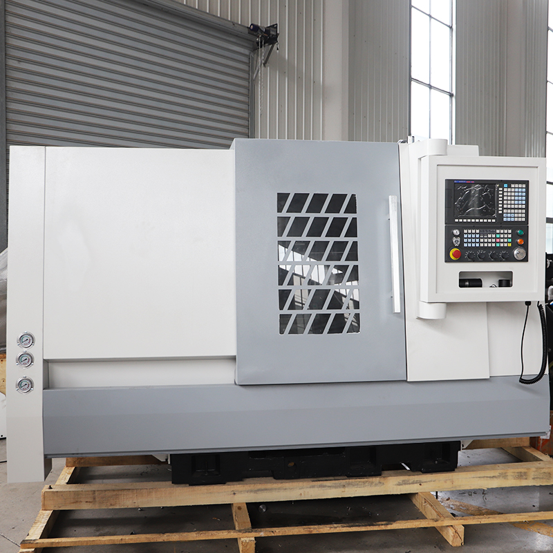 高刚性的结构设计:床身采用整体铸造成形,床身导轨45°倾斜布局,具备较大的承载截面,有良好的刚性和吸震性,可保证高精度切削加工。